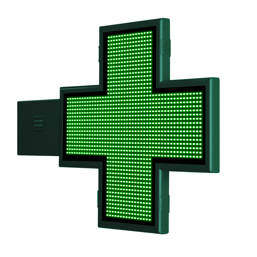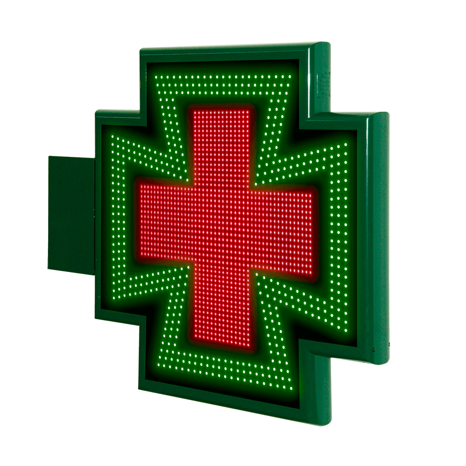 Cruces de Farmacia LED 2D, 3D, cruz solar y cruces Full Color para mostrar imágenes y vídeos publicitarios personalizables a todo color.